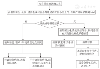 利用网络资源协助追踪、督促来自疫情发生地区的人员居家医学观察,在医学观察14 d内,可以借助网络系统监测其健康状况,例如由患者或家属以"电子版患者日志卡"形式每天通过微信、手机App、网络登记或电话联系,及时登记个人病情变化,社区卫生工作人员进行实时检测,设置预警功能,发生异常情况主动提醒、及时报告。