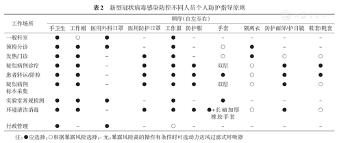 (3)做好医务人员防护:基层医疗卫生机构应当规范消毒、隔离和防护工作,储备质量合格、数量充足的防护物资。在严格落实标准预防的基础上,强化接触传播、飞沫传播和空气传播的感染防控。全体医务人员除外指令性任务等特殊原因,应停止外出参加会诊、学术交流等活动。不同人员防护参照表2。