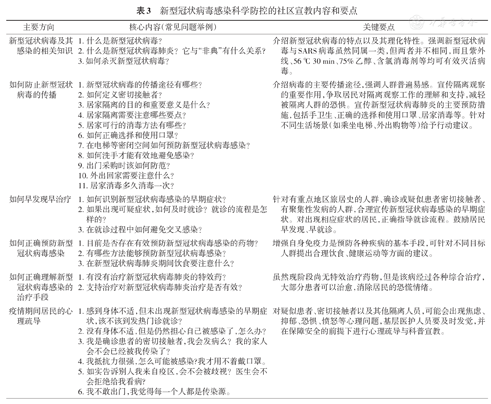 为便于基层防控工作的开展,建议从以下方面着手进行居民宣教(表3):