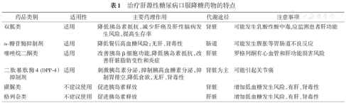 治疗肝源性糖尿病口服降糖药物的特点见表1。