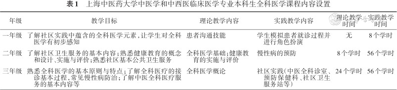 上海中医药大学中医学和中西医临床医学专业本科生全科医学课程内容设置