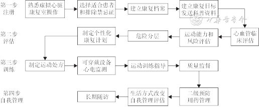 第三步:运动训练,为患者制定个性化运动处方,应用可穿戴设备监测心率,对患者进行个性化强度的运动训练,告知注意事项,按照相关指南建议[2]建立心脏康复质量保证和阶段性评价制度。