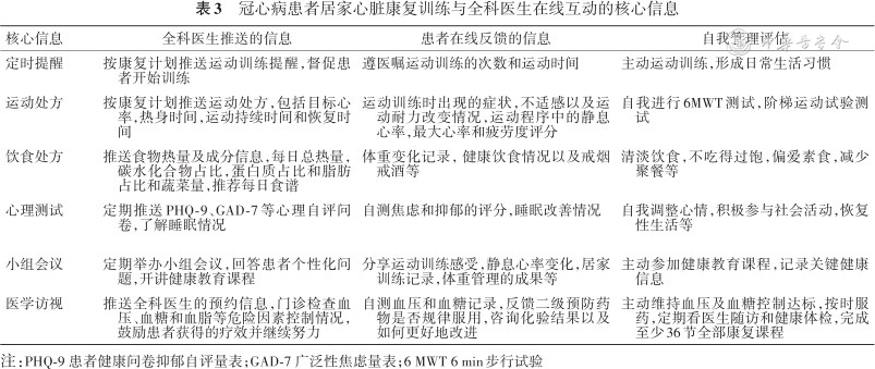 冠心病患者居家心脏康复训练与全科医生在线互动的核心信息
