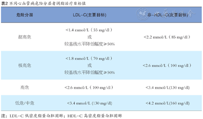 | 危险分层 | LDL-C(主要目标) | 非-HDL-C(次要目标) |
