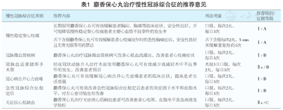 | 慢性冠脉综合征类别 | 推荐内容 | 用法用量 | 推荐级别/证据等级 |