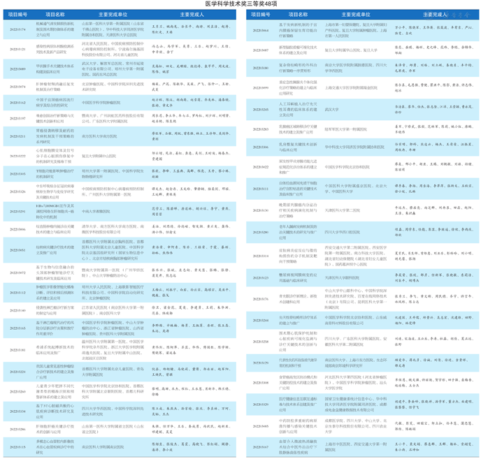 | 202201113 | 门静脉高压介入诊疗关键技术研究与应用 | 中国医学科学院肿瘤医院、四川大学华西医院 | 李肖、杨丽、罗薛峰、赵赫、曹家玮、王竹、张晓武、王小泽 |