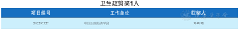 授予中国卫生经济学会刘新明教授为2022年中华医学科技奖卫生政策奖获奖人。