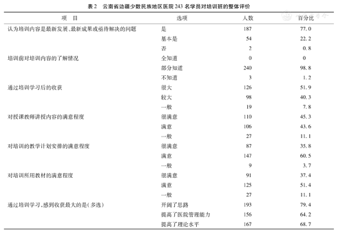 云南省边疆少数民族地区医院243名学员对培训班的整体评价