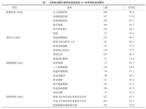 了解云南省边疆少数民族地区医院管理人员现状和培训需求,为加强管理人员队伍建设、调整培训内容、提高培训效果提供科学依据。