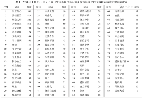 新型冠状病毒肺炎(以下简称新冠肺炎)发病率高、传染性强、在幼儿和老年人患病群体中的致死率也比较高,这给世界各国人民的生命健康和生活质量造成了严重的威胁,同时也引起了社会的广泛关注。国务院总理李克强同志于2020年5月22日在第十三届全国人民代表大会第三次会议上指出,新冠肺炎疫情是中华人民共和国成立以来传播速度最快、感染范围最广、防控难度最大的重大突发公共卫生事件。在疫情防控期间,我国各地医务人员主动申请前往疫情一线,展现出英勇无畏、无私奉献的精神面貌,为疫情防控工作做出了不可磨灭的贡献。在疫情防控背景下,各种网络平台和媒体对医务人员的杰出贡献和崇高精神进行报道,医务人员群体和医师职业精神也因此更加受关注。医师职业精神被视为提高医疗服务质量的一项不可缺少的因素[1],21世纪以来国际上有很多权威机构都提出了医师职业精神的概念并强调了其重要地位[2,3,4],并将其纳入到医学生培养标准中。然而,既有的医师职业精神框架基于非疫情时期建立,像新冠肺炎疫情这类重大突发公共卫生事件背景下医师群体展现出的新特质未被既有的医师职业精神框架所涵盖。为此,本研究旨在通过撷取中国新闻网在疫情防控期间的社会新闻内容,标记医师职业精神词库,分析新冠肺炎疫情防控背景下的医师职业精神内涵,探索疫情防控背景下的医师职业精神新体现,丰富已有的医师职业精神框架内容,希望可以为医学人才医师职业精神的培育提供帮助。