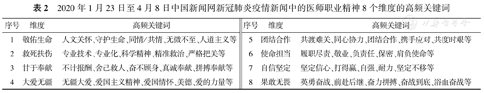 2020年1月23日至4月8日中国新闻网新冠肺炎疫情新闻中的医师职业精神8个维度的高频关键词