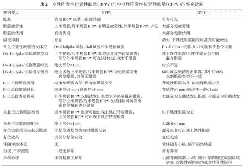 良性阵发性位置性眩晕(BPPV)与中枢性阵发性位置性眩晕(CPPV)的鉴别诊断