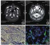NUT癌是一个相对较新的概念,于1991年首次报道[1],且在2003年发现了其NUT和BRD4基因融合的主要特征[2]。学者们认为,其发病是由BRD4-NUT融合基因刺激组蛋白高乙酰化,进而招募额外的BRD4加强转录激活而诱发的一系列下游反应所致[3,4]。因其多见于纵隔、头颈等身体中线部位,NUT癌曾一度被称为中线NUT癌。Giridhar等[5]系统回顾了2017年7月之前报道的119例患者,其发生部位以肺部、头颈及纵隔居多,分别为42例(35.3%)、40例(33.6%)和31例(26%),头颈部属于NUT癌相对多见的发病部位。NUT癌的实际发病率可能高于已报道的水平,Bishop和Westra[6]对未诊断为NUT癌的鼻部肿瘤研究发现,75%的50岁以下鼻腔未分化癌的患者实际上都存在NUT癌细胞。