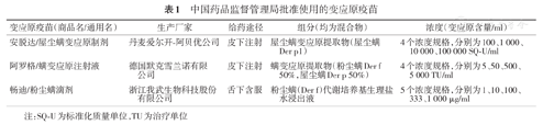| 变应原疫苗(商品名/通用名) | 生产厂家 | 给药途径 | 组分(均为混合物) | 浓度(变应原含量/ml) |