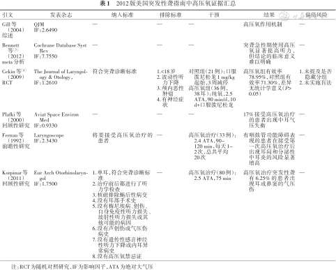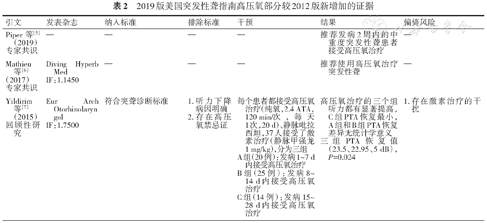 2019版美国突发性聋指南高压氧部分较2012版新增加的证据