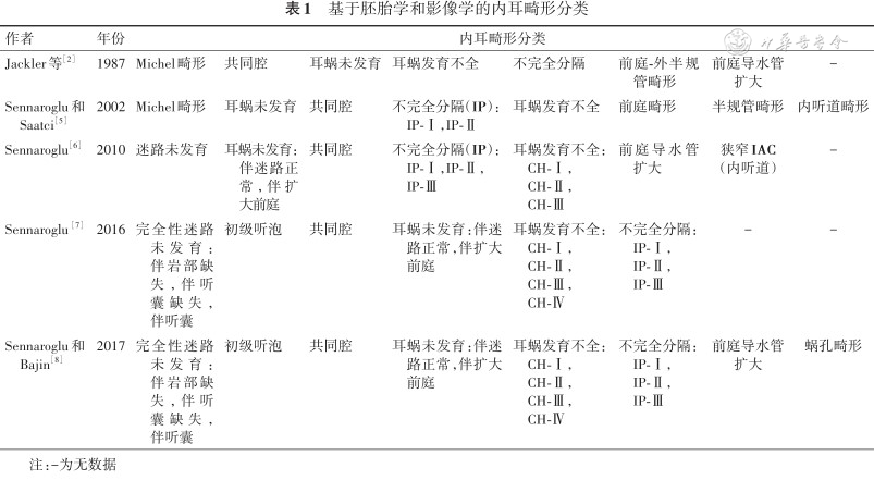基于胚胎学和影像学的内耳畸形分类