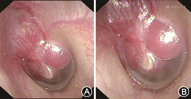 鼓室球体瘤是起源于鼓室舌咽神经鼓室支及迷走神经耳支的化学感受器瘤,起源于副神经节,通常是良性的、生长缓慢的、无痛的肿瘤[1],是中耳最常见的良性肿瘤[2]。多见于中年女性患者,男女发病比例为1∶3~6。早期多生长于鼓岬表面,发展缓慢,可能在数年内保持稳定[3],一般病灶以中耳腔为中心,循阻力小的组织及自然通道扩散,逐渐侵及周围结构[4]。未突破鼓膜时,因无法看到肿瘤常容易漏诊。临床上常以单侧搏动性耳鸣、鼓膜内侧红色肿块和听力下降就诊[5]。有文献提及鼓室球体瘤可侵入鼓岬影响内耳,间歇性眩晕作为仅有的症状[6],也可向前壁累及咽鼓管和鼻咽部因鼻出血首次就诊[7, 8, 9],以及有罕见的双侧鼓室球体瘤病例出现[10]。