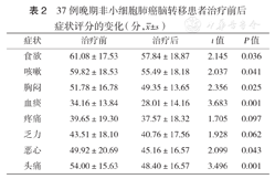 | 恶心 | 49.92±20.69 | 45.16±16.57 | 2.099 | 0.043 |