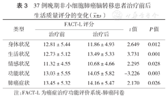 37例晚期非小细胞肺癌脑转移患者治疗前后生活质量评分的变化(