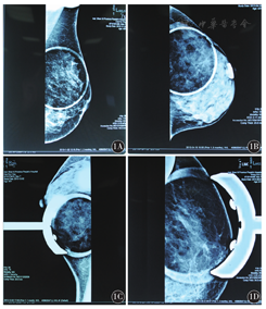 采用美国Hologic全数字化乳腺机摄影Selenia系统,管电压20~39 kV, 30~150 mAs,采用小焦点0.1 mm,大焦点0.3 mm,自动曝光模式下采用加压放大7.5 cm点压迫板和7.5 cm局部放大压迫板,影像传输到SecurView乳腺专用工作站5MP Barco LCD双屏进行阅片。根据2003年美国放射学院(ACR)制定的乳腺X线的BI-RADS分类,BI-RADS≤2为良性,BI-RADS=3为可能良性,BI-RADS≥4a为可能恶性。