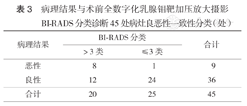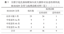 全数字化乳腺钼靶加压放大摄影对良恶性微钙化BI-RADS分类与病理诊断对照(处)