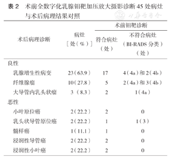 术前全数字化乳腺钼靶加压放大摄影诊断45处病灶与术后病理结果对照