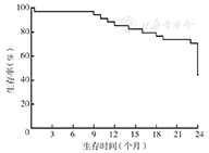 截至随访结束,有10例患者死亡,其中死于局部进展4例,死于远处转移3例,其他原因死亡3例。1年肿瘤局部控制率94.3 %(33/35),1年总生存率88.6 %(31/35),2年肿瘤局控率74.3 %(26/35),2年总生存率71.4 %(25/35)。生存曲线见图1。