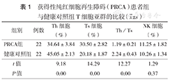 获得性纯红细胞再生障碍(PRCA)患者组与健康对照组T细胞亚群的比较(