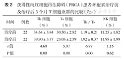 获得性纯红细胞再生障碍(PRCA)患者环孢素治疗前及治疗后3个月T细胞亚群的比较(