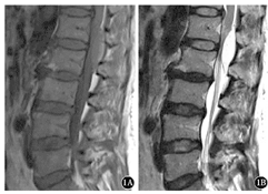 1A:均匀T1等信号;1B:均匀T2高信号