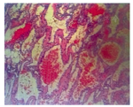 女性,49岁。主因双下肢麻木、无力7个月余入院。专科查体:腰椎活动受限,上腰段棘突压痛叩击痛,可向双下肢放射,双下肢自腹股沟以远痛觉减退,双下肢各肌肌力约为Ⅳ级,双侧膝腱反射减弱,双侧跟腱反射未引出,双下肢病理征未引出。磁共振成像(MRI)提示:腰1~2椎体水平椎管内硬膜外可见椭圆形T1W1等信号(图1A),T2W2高信号(图1B),信号均匀,边缘清楚,大小约为4.2 cm×1.3 cm,脊髓圆锥受压,椎管矢状径减小。在全身麻醉下行手术切除,术中可见肿物呈红褐色,质地软,与脊髓硬脊膜紧密粘连,小心完整地切除肿瘤组织。术后病理结果为非椎体起源海绵状血管瘤(图2)。患者术后双下肢麻木感明显减轻,自觉双下肢轻松感,术后3个月随访时,双下肢肌力基本恢复正常。