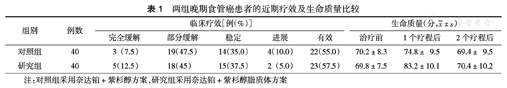 两组晚期食管癌患者的近期疗效及生命质量比较