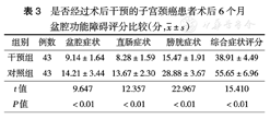 是否经过术后干预的子宫颈癌患者术后6个月盆腔功能障碍评分比较(分,