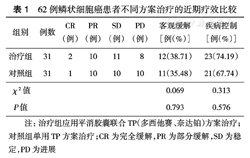 62例鳞状细胞癌患者不同方案治疗的近期疗效比较