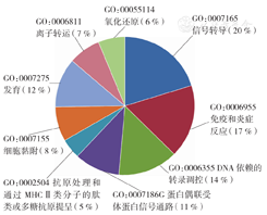 采用MAS 3.0(Molecule Annotation System 3.0)生物信息注释系统对差异表达基因进行GO分析,采用京都基因与基因组百科全书(Kyoto Encyclopedia of Genes and Genomes,KEGG)公共数据库进行信号通路分析。