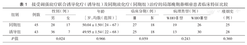 接受调强放疗联合诱导化疗(诱导组)及同期放化疗(同期组)治疗的局部晚期鼻咽癌患者临床特征比较