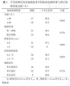 子宫颈神经内分泌癌患者不同临床病理因素与预后的单因素分析(%)