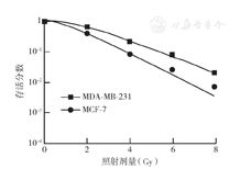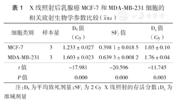 X线照射后乳腺癌MCF-7和MDA-MB-231细胞的相关放射生物学参数比较(
