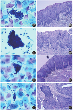 注:ASC-H为不除外高度鳞状上皮内病变的不典型鳞状上皮细胞;CIN为子宫颈上皮内瘤变;1B、1D、1F、1H分别与1A、1C、1E、1G病例相对应