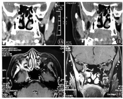 腺样囊性癌是好发于头颈部涎腺组织的上皮源性恶性肿瘤,肿瘤生长缓慢,尤其是发生于鼻颅底区的肿瘤,早期多无明显症状,随着肿瘤的生长,侵犯周围神经肌肉时才会出现疼痛及功能障碍。翼腭窝为蝶骨翼突和上颌窦后壁之间的骨性间隙,内有颌内动脉、上颌神经及蝶腭神经节等重要结构,且经相应骨管与口腔、眶、鼻腔、颅中窝、颞下窝贯通。翼腭窝位置隐蔽,发生于该间隙的占位性病变临床易造成误诊及误诊。