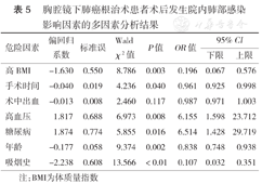 胸腔镜下肺癌根治术患者术后发生院内肺部感染影响因素的多因素分析结果