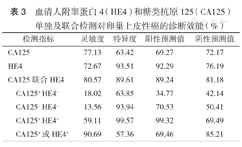 探讨血清人附睾蛋白4(HE4)和糖类抗原125(CA125)联合检测对卵巢上皮性癌的诊断价值。