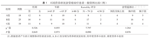 不同营养状况食管癌放疗患者一般资料比较(例)
