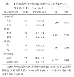 | 临床病理特征 | 例数 | FR+ CTC水平 | t值 | P值 | |