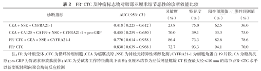 FR+ CTC及肿瘤标志物对肺部亚厘米结节恶性的诊断效能比较