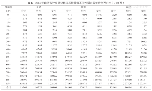 探讨2014年山西省肿瘤登记地区恶性肿瘤发病与死亡情况。