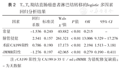 T3、T4期结直肠癌患者淋巴结转移的logistic多因素回归分析结果