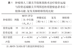 | 肿瘤部位 | 例数 | MSTS评分[分,中位数(P25,P75)] | 伸膝延迟[例(%)] | 复发[例(%)] | 肺转移[例(%)] |