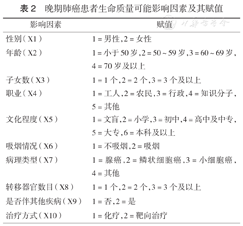 晚期肺癌患者生命质量可能影响因素及其赋值