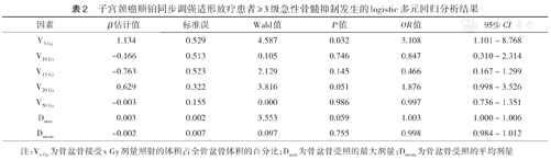 子宫颈癌顺铂同步调强适形放疗患者≥3级急性骨髓抑制发生的logistic多元回归分析结果